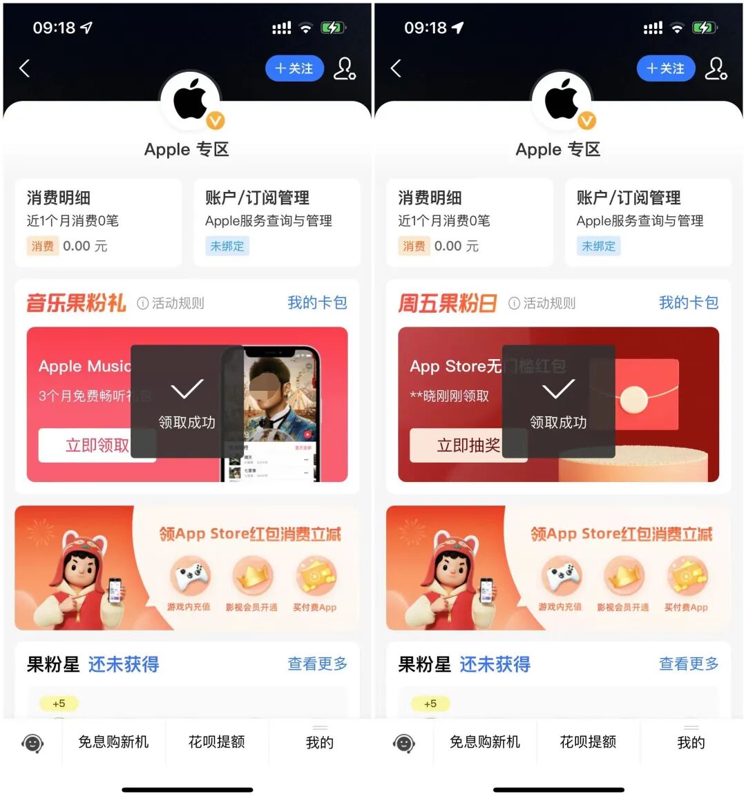 今天这篇文章可是干货满满哦,我就轻轻那么一薅,4个月的Apple Music会员和9块7毛7的App Store充值红包就到手了!