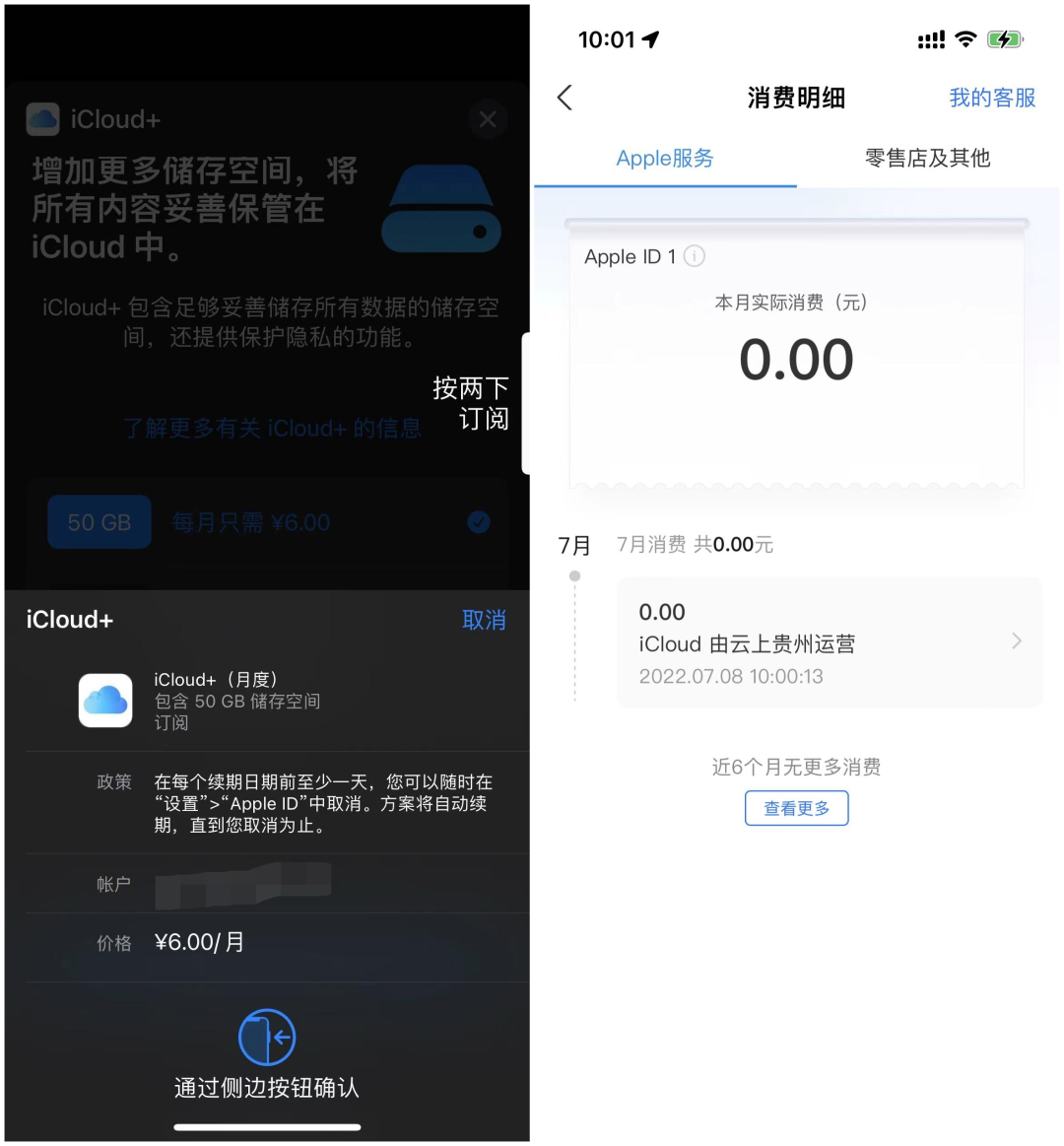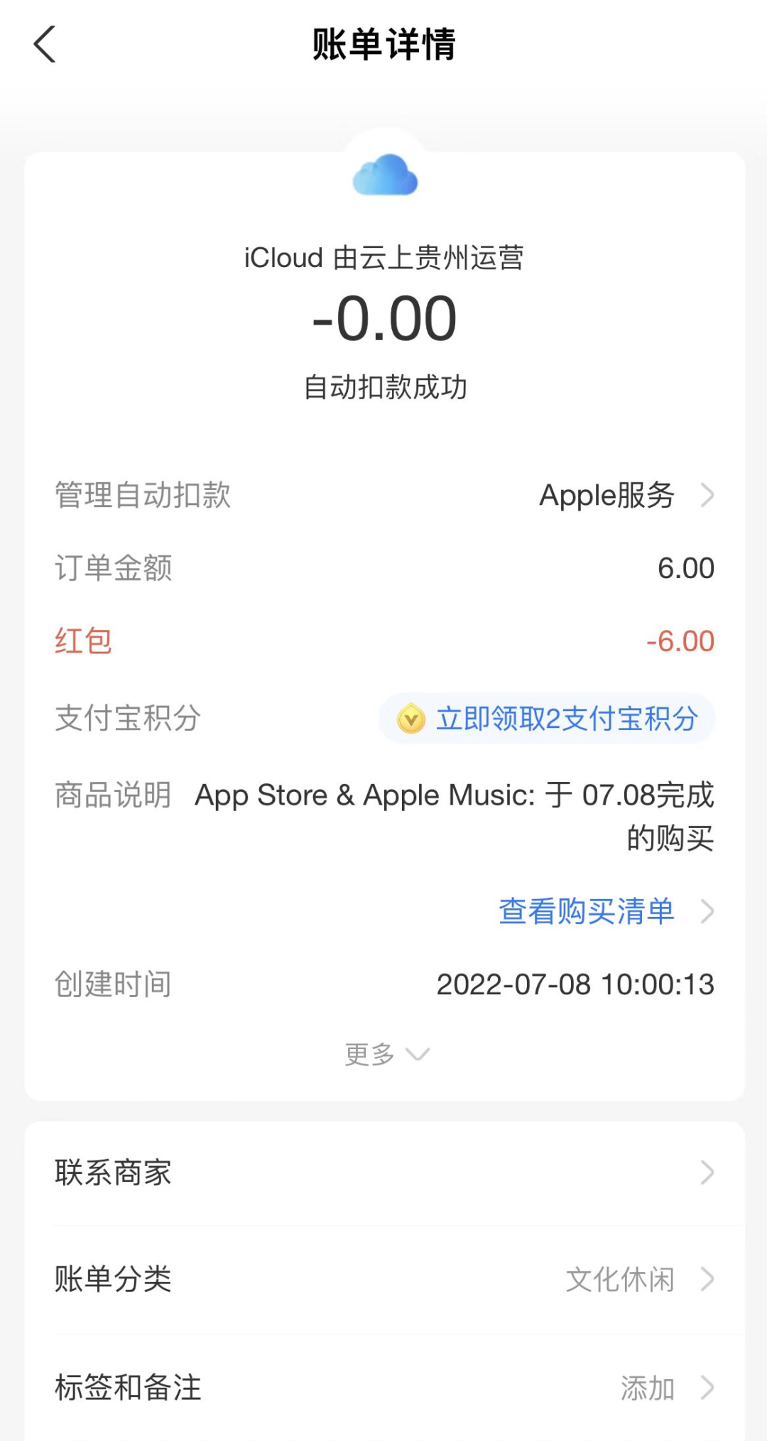 我用领到的红包买了一个月的iCloud,最终付费金额为0元。