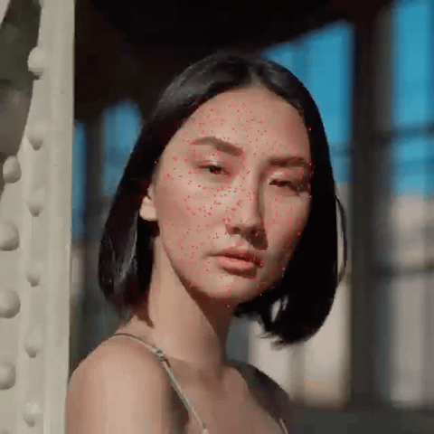 说白了,在拍摄时,它能准确识别人脸的300个面部特征点,比如眉毛、嘴唇、下颚线等等……