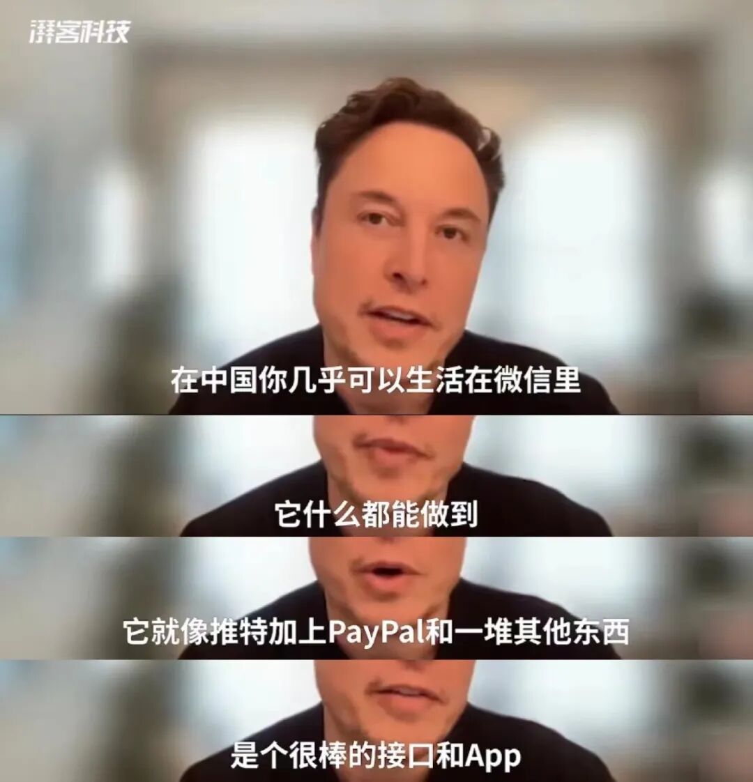 马斯克之前还多次公开夸赞微信:“如果你身在中国,基本上就要依赖微信生活。微信功能强大,类似于推特加PayPal支付,再加上其它各种功能,这些功能融为一体。界面也很棒,这真是一个很好的App。”