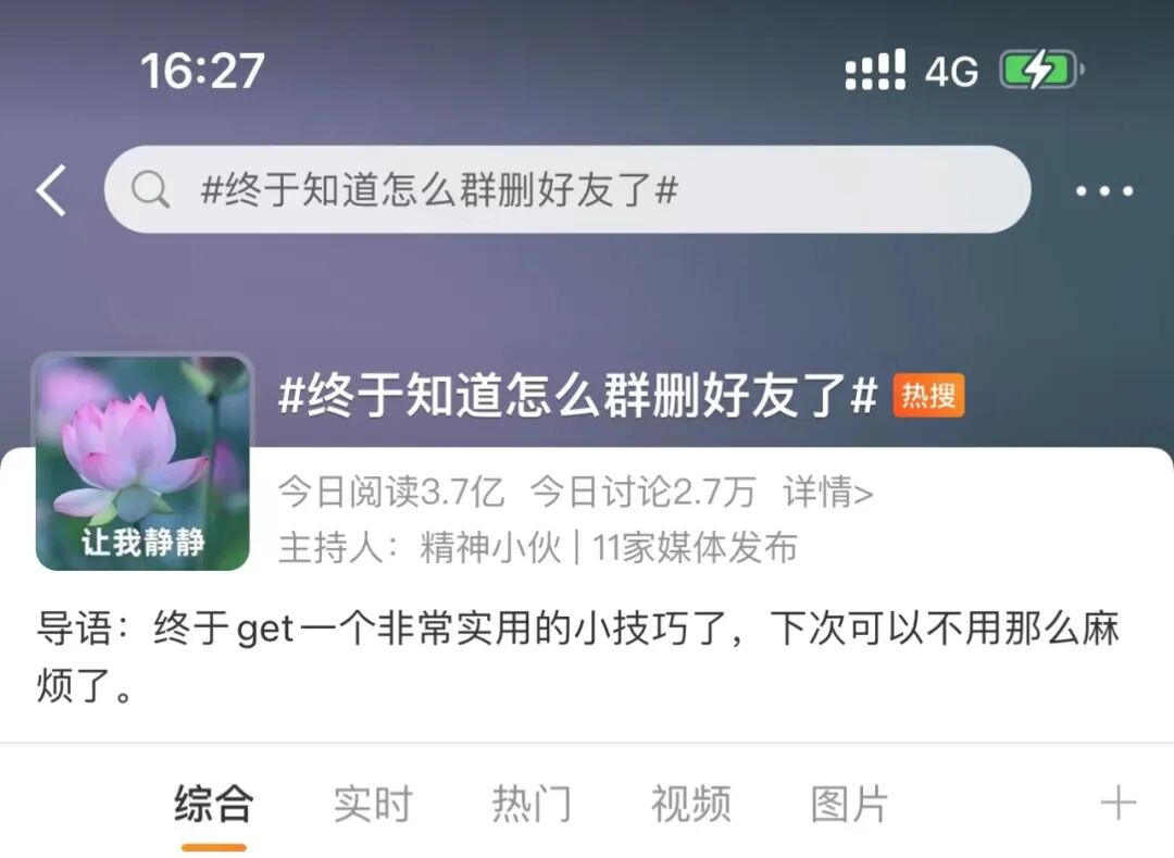 昨天,在众多爆炸性热点里,一条“批量删好友”突然悄咪咪地上了热搜。