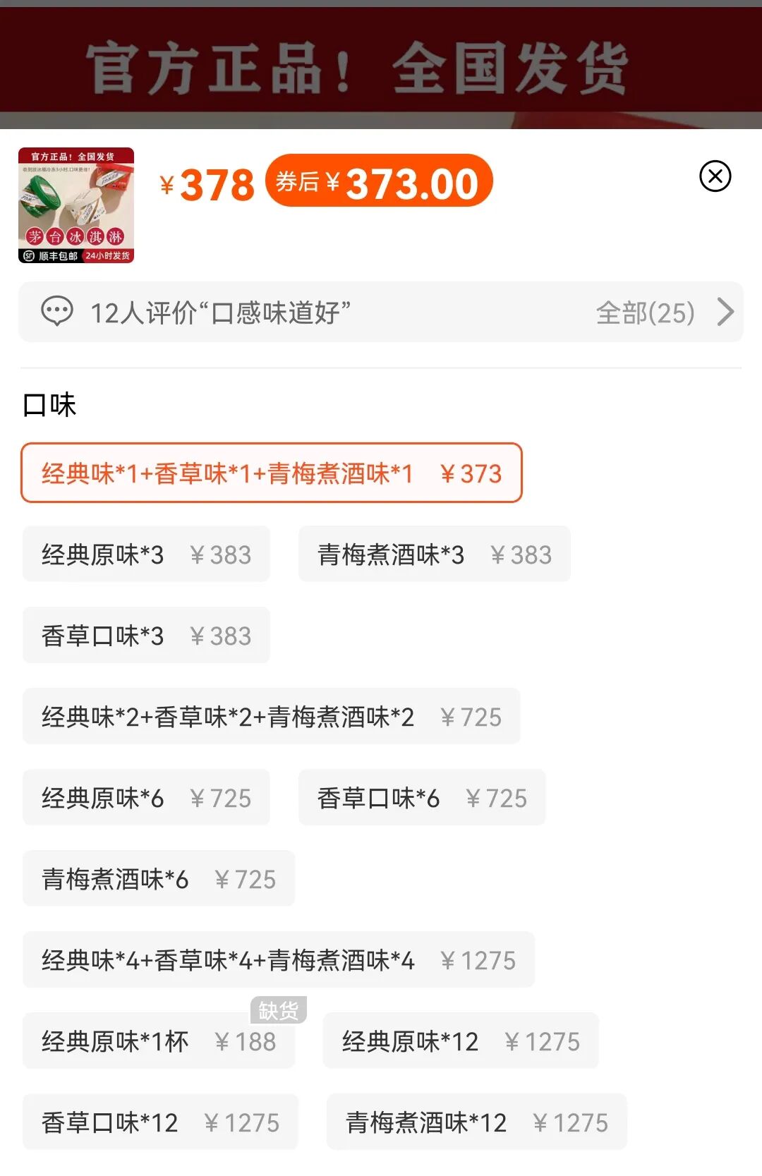 而且目前货也是挺足的,鸭鸭在“i茅台”上打算每种口味各买12份是能买到的!
