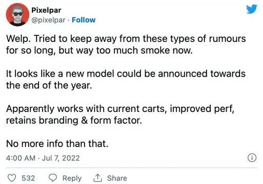 近期,Twitter博主@ PIxelpar爆料称,任天堂将于今年年底前推出新款Switch,保留现有的设计,支持目前已有的底座,性能提升。