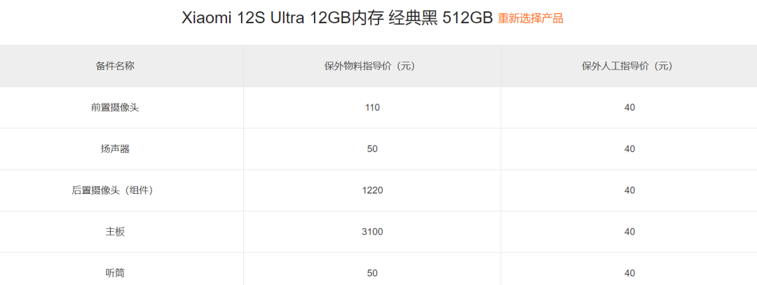 那小米12S Ultra如果损坏需要更换组件,保外维修价格是多少?
