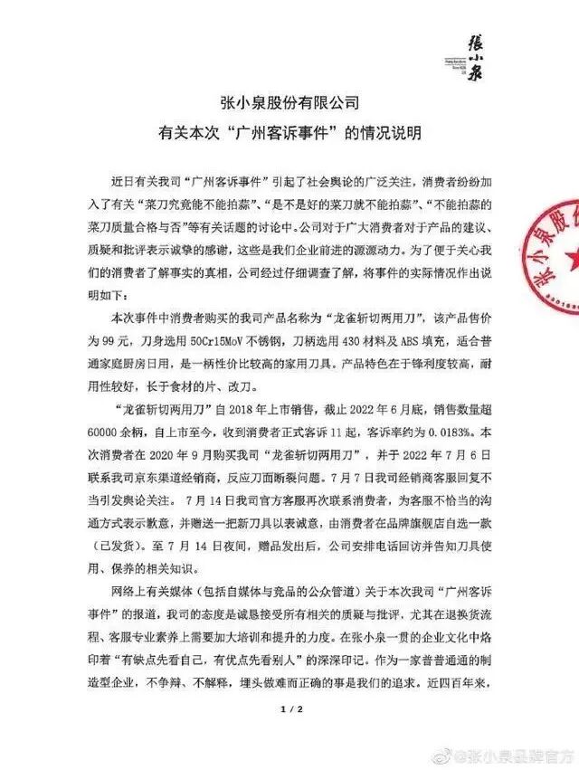 因为一把“中华老字号”张小泉的菜刀,网友这几天吵翻了……