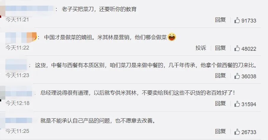 说的直白一点,也就一把菜刀、几十上百块钱的买卖而已,咋还就能扯到“教育消费者”、“中国人不会切菜”的方向上去了???