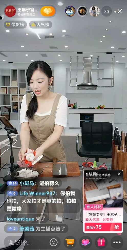 就在事件发酵的当口,另一家刀具界的“老字号”王麻子,竟然在直播间搞起了“直播拍蒜”,并且承诺所售刀具均可以拍蒜,还支持三年质保,出问题都能免费换新。