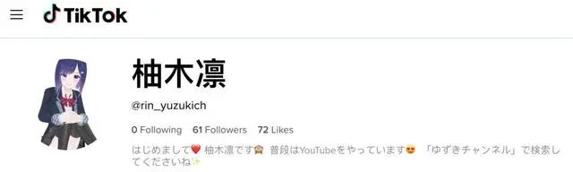 举个例子,一位日本的虚拟主播柚木凛,在禁止搞黄色的TikTok平台上,只有不到百名的粉丝。