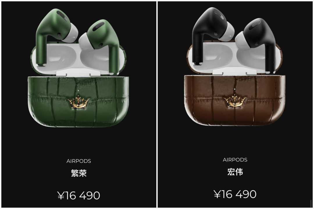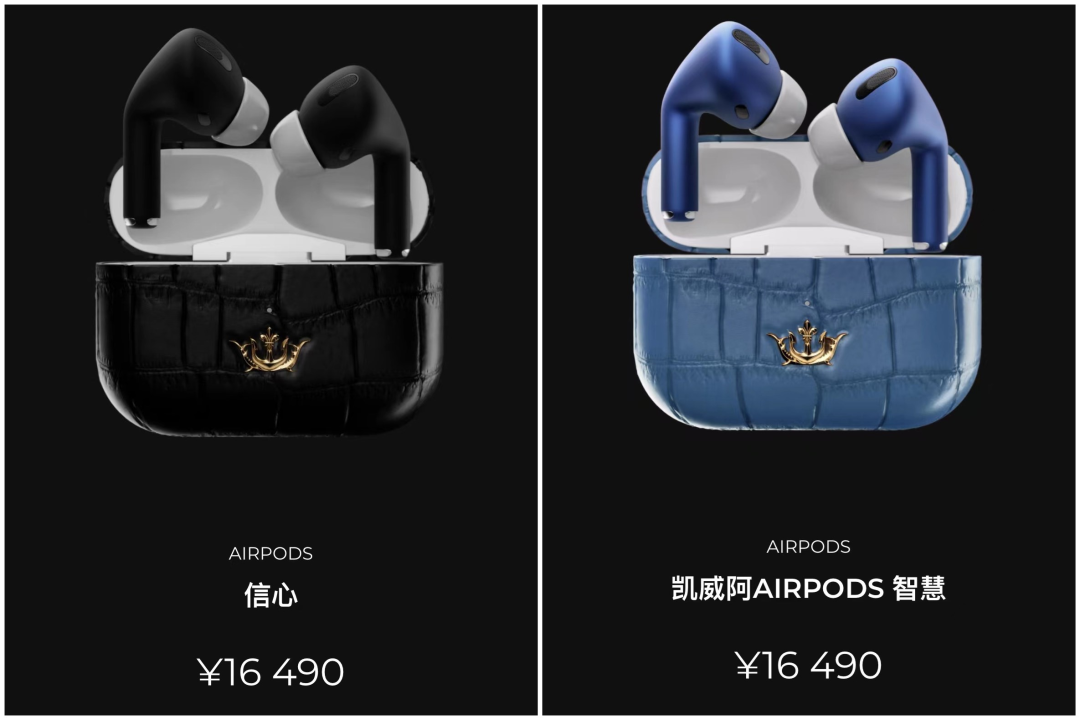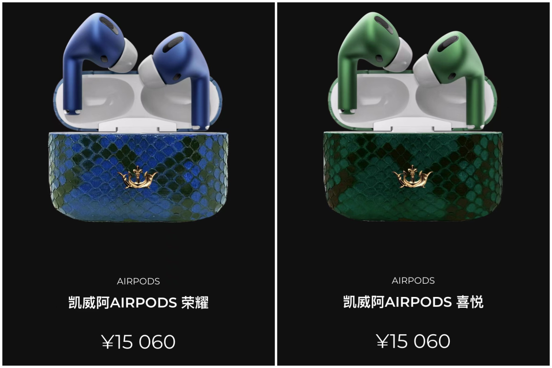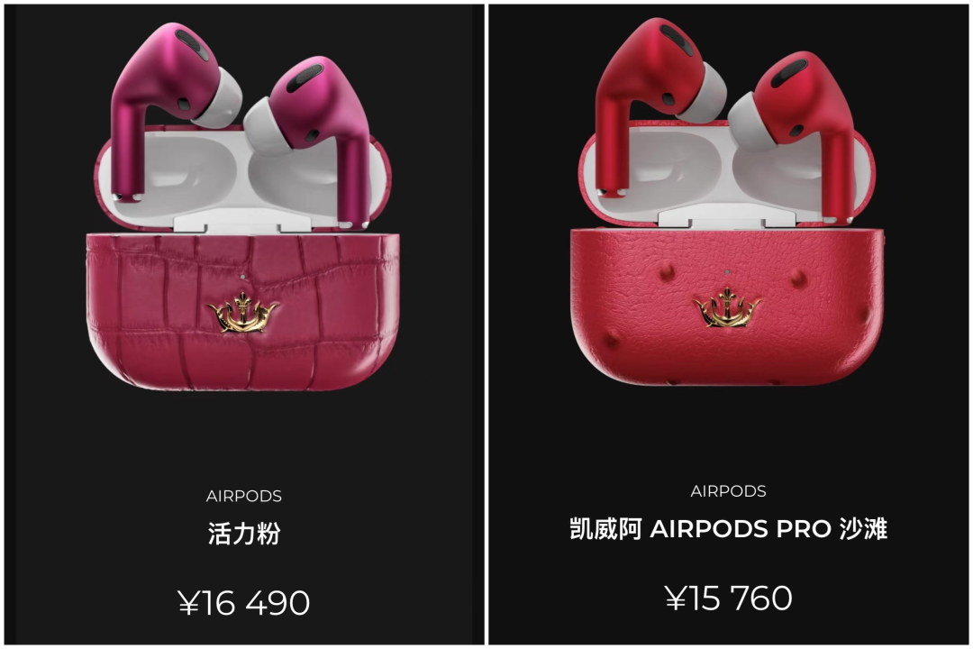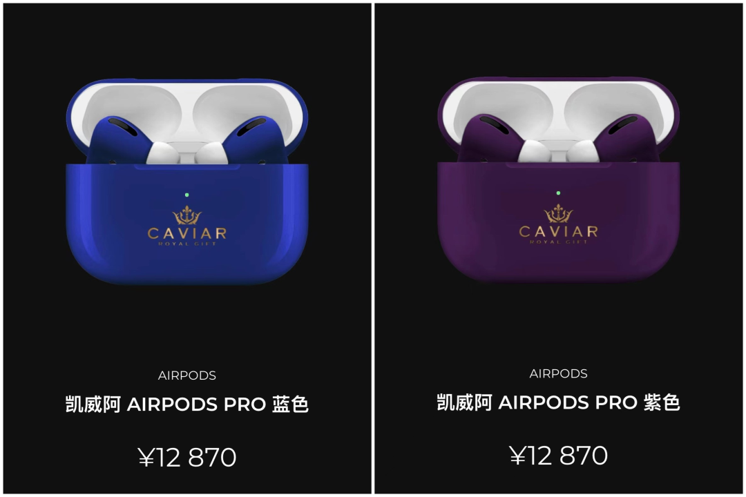 除了这款黑色鳄鱼皮Airpods,CAVIAR还推出了多款彩色Airpods,有蓝色、紫色、红色、粉色等等。