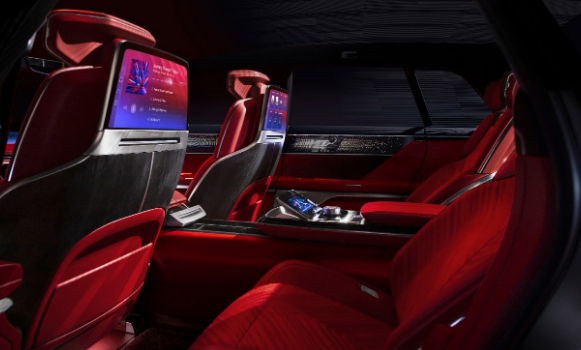 新车车顶配有“四象限悬浮粒子装置智能玻璃”,包括四个可变照明区域,使乘客能够微调他们的客舱体验,以获得完全个性化的舒适度和能见度。