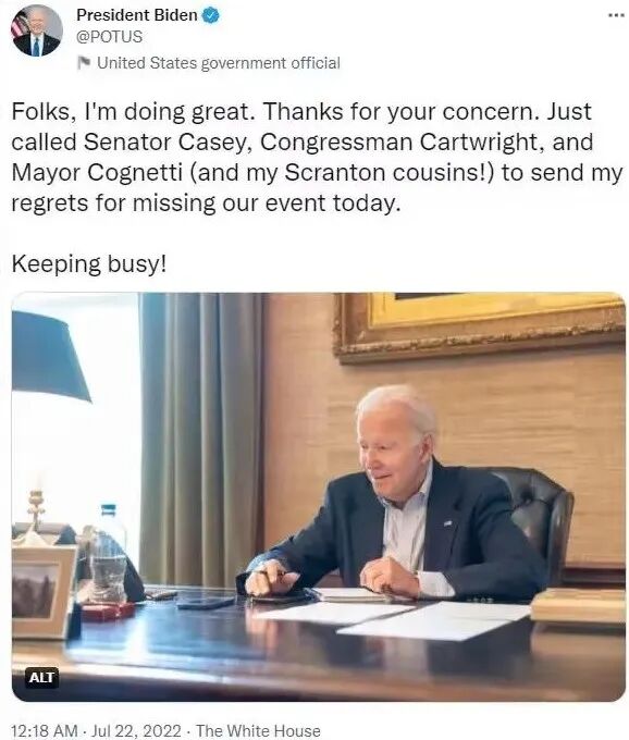 在此之前,拜登也已经完全接种新冠疫苗,并接种了两剂加强针。确诊之后,现在也已经开始服用辉瑞研发的抗病毒药物Paxlovid(帕克斯洛维德)。