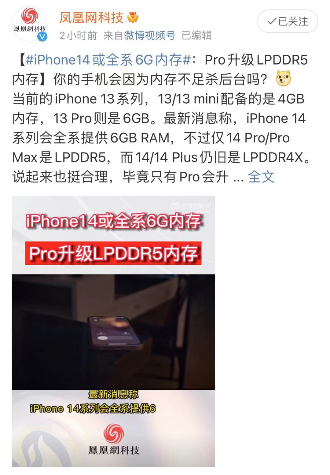 另外,最新消息显示,iPhone 14或全系6G内存,虽然安卓这边到12GB或者16GB了,这对经常内存不足的宝子们来说未尝不是个好消息。