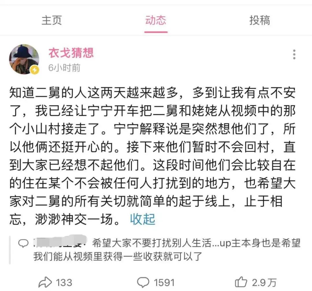 B站:@衣戈猜想 “那是因为二舅活得好,不是因为我写得好”回村三天,二舅治好了我的精神内耗