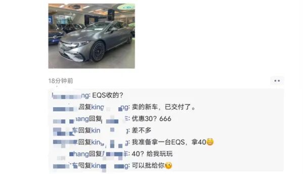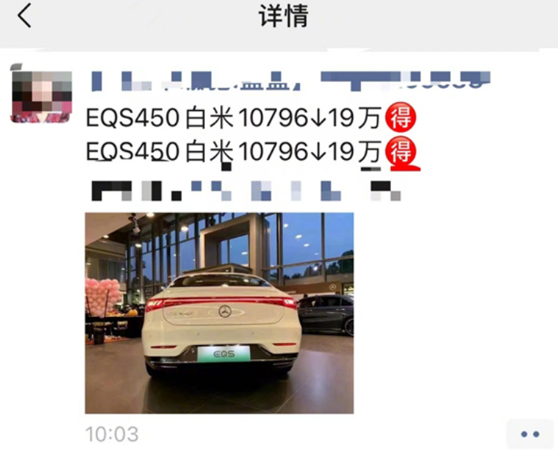 最近有博主曝光了一张微信朋友圈截图,截图显示,其朋友在近期提了一辆奔驰EQS,提车价格相比官方售价要低了近30万元。