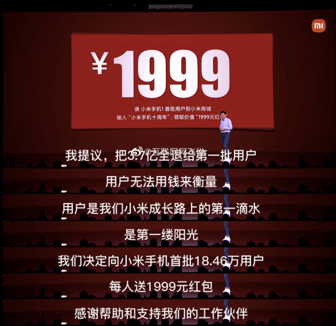 这不,雷军思前想后,硬是决定把小米的第一桶💰3.7亿,通过红包形式返还给首批用户……这回“霸道总裁”人设可就实锤了!