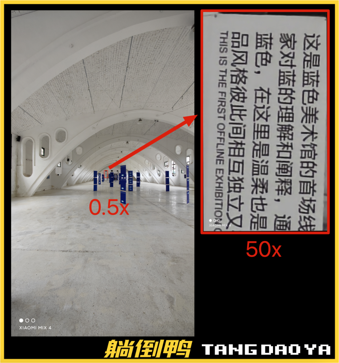小米MIX 4搭载了一颗50x潜望式长焦,即便拉到极限,配合OIS光学防抖也能拍清远距离的文字,相比之下🍎就有些捉襟见肘。