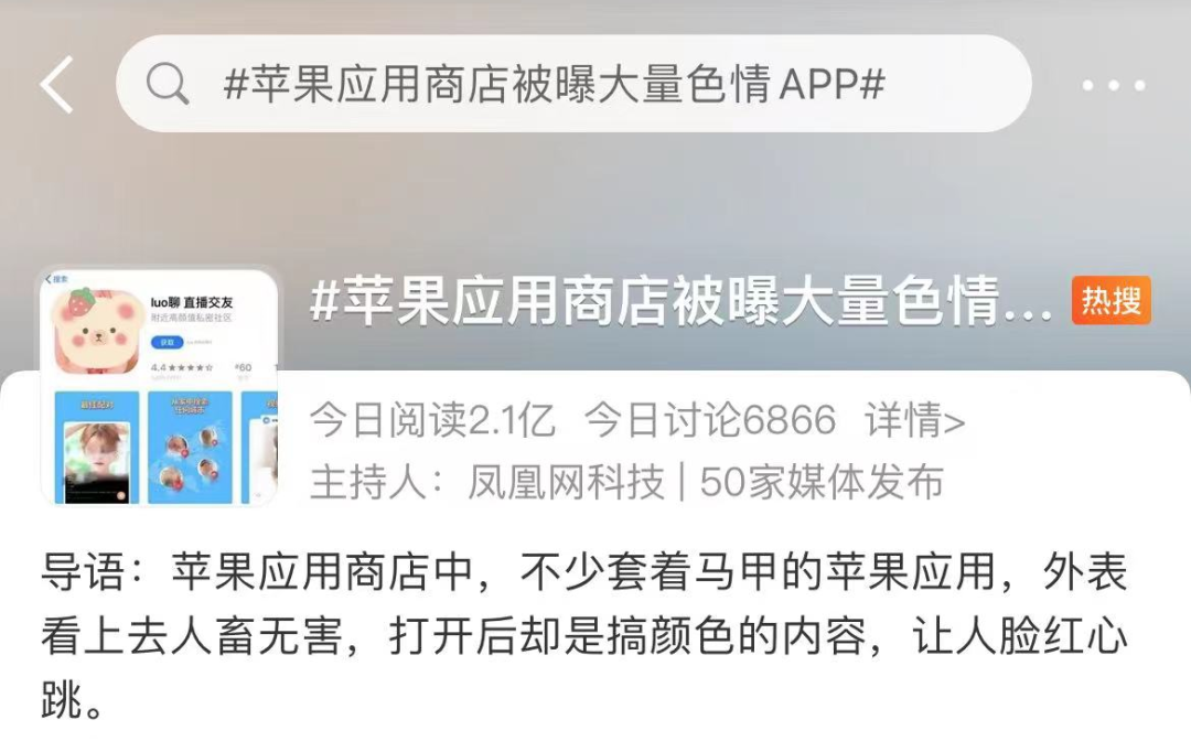最近,苹果公司再一次冲上热搜榜的第一位,这次是因为应用商店被爆大量色情App。