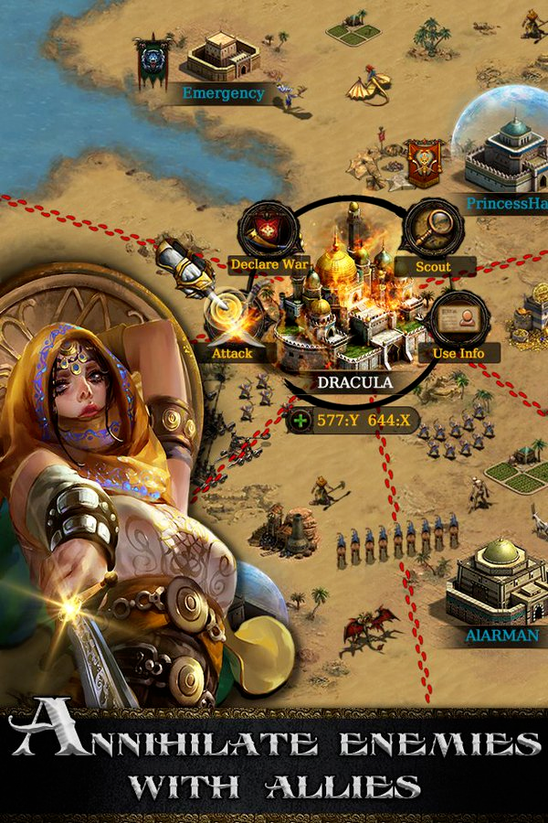 玩法无非就是巩固城邦,和其他玩家缔结盟约,最后刷副本和其他玩家PK的老套路。