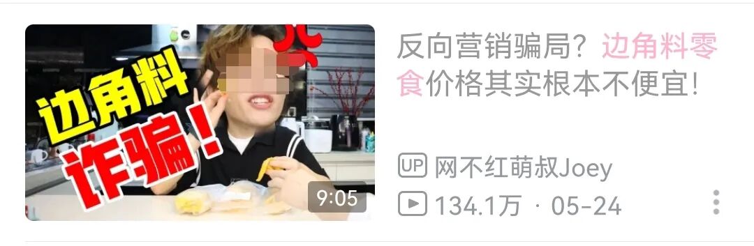 不仅如此,博主@网不红萌叔Joey在其发布的“边角料零食”测评视频中,直接声称: