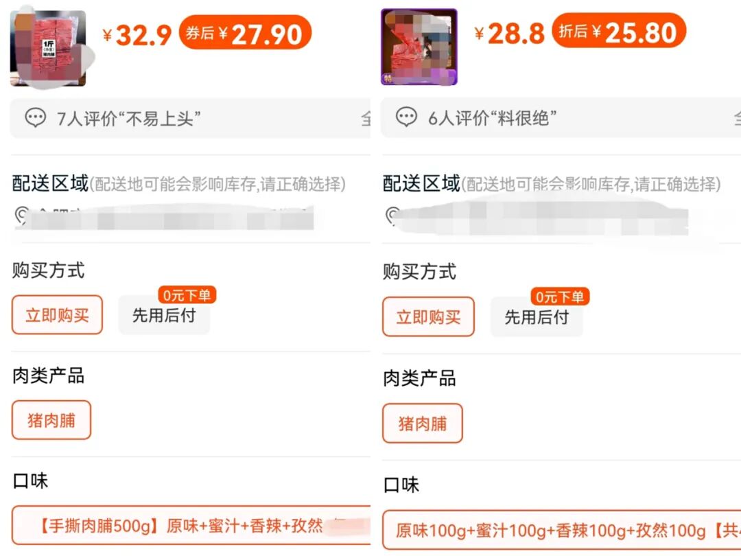 听到这句话,鸭鸭选了同一家店卖的猪肉脯进行对比: