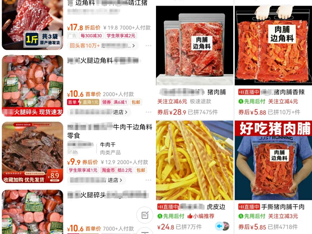 于是,鸭鸭火速打开了淘宝和拼多多,发现月销几千甚至几万的“边角料零食”可谓是数不胜数……
