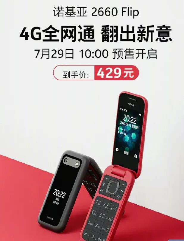 在价格方面,目前国内只有诺基亚2660 Flip开启了预售,限时到手价为429元。