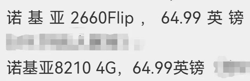 诺基亚8210 4G国外售价64.99英镑,折合人民币约529元