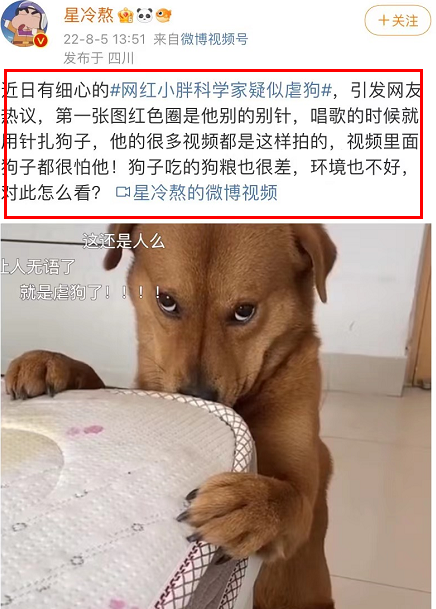 但最近这几天,一条有关于“网红小胖科学家疑似虐狗”的新闻,把这个博主骂上了热搜......