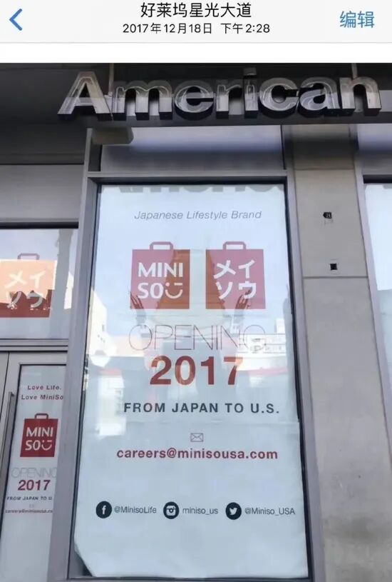 名创优品在美国的一家店铺广告中,写的是“from Japan to US”(从日本到美国)。