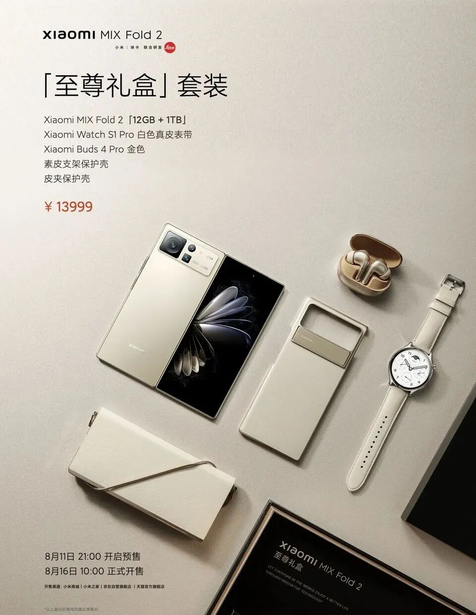 对了,为了让终极米粉感受一把“我全都要”的快乐,小米还特地推出了一套【至尊礼盒】套装,包括全新折叠屏+耳机+手表+各式配件,售价13999元。