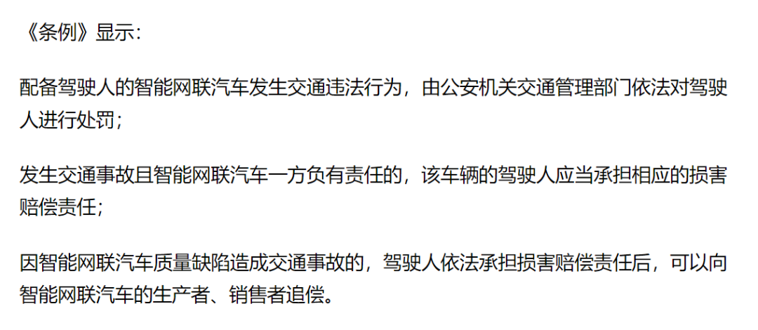 此前,深圳曾推出过一份《深圳经济特区智能网联汽车管理条例》。作为先行者,对国内自动驾驶事故的责任进行了明确划分。