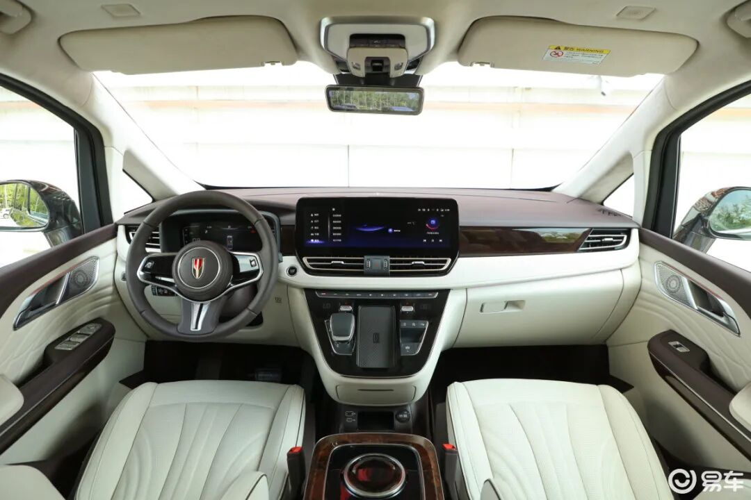 内饰方面,红旗HQ9这回走的是简约风,采用传统的T型中控台、三幅式方向盘。