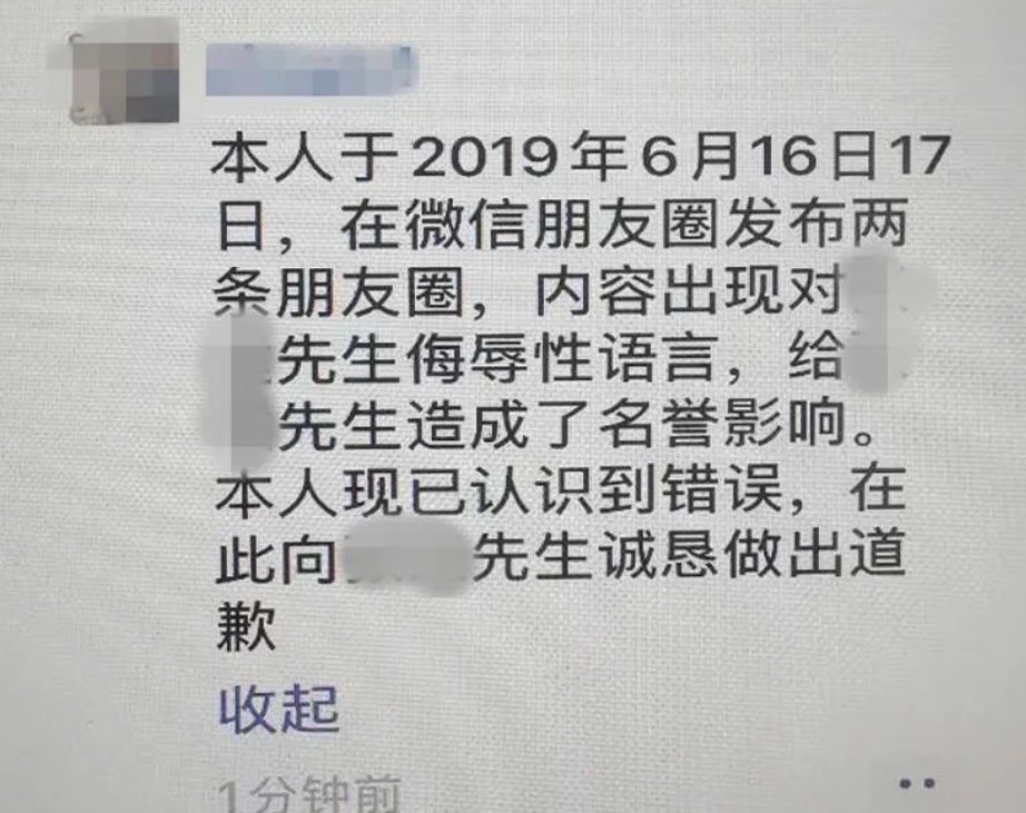 2020年8月7日,李某在其朋友圈发布道歉消息。