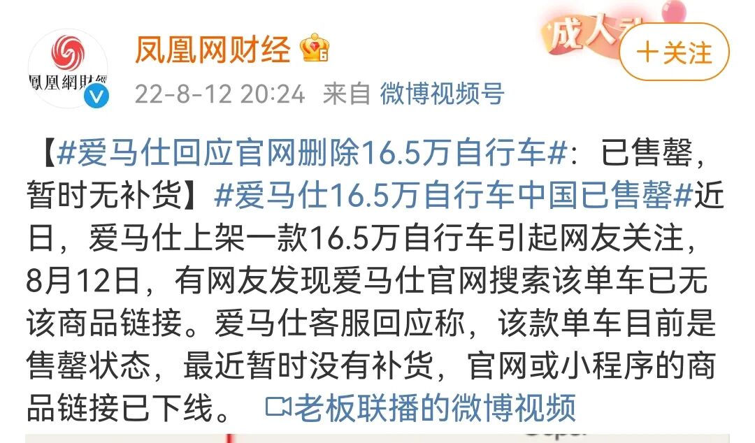 快科技 16.5万 爱马仕自行车上海门店已售罄!网友:一台思域没了