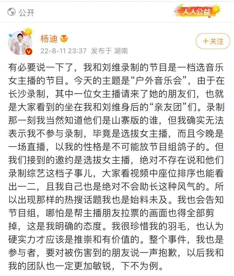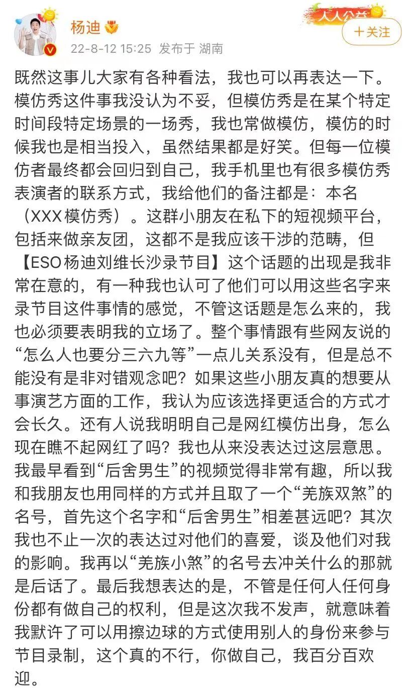 随后,杨迪也是再一次进行了回应。