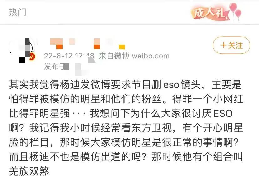 所以,在吃瓜群众们看来,这一画面看起来就很像杨迪和刘维对ESO这种山寨组合的支持,以致引起了一系列争议。