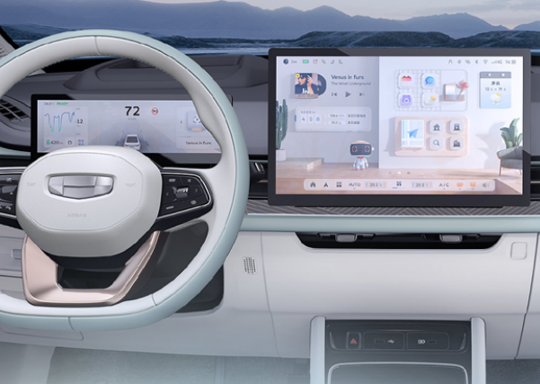 这款新车搭载了基于HarmonyOS开发的几何数智座舱,所以界面显示跟原生态的问界M5有些不同,可以看到其桌面上内容较多。