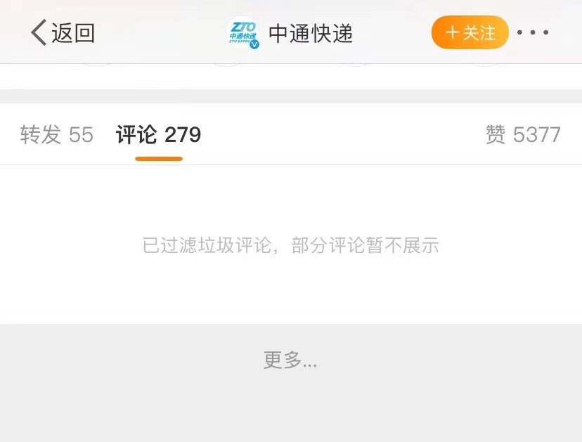 鸭鸭还发现,现在 @中通快递 的官方微博已经是关闭评论区的状态