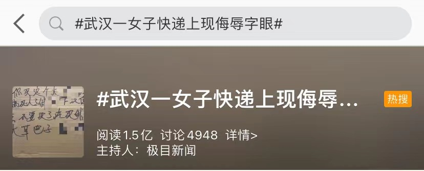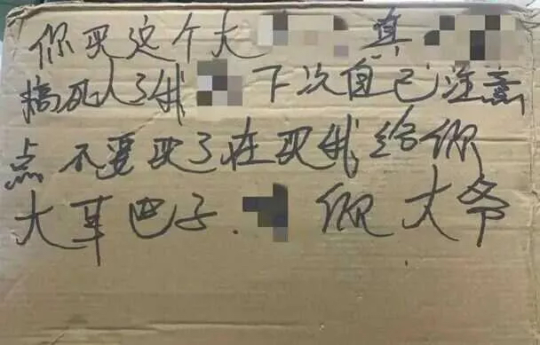 于是在她的快递盒上留下了这些侮辱人的言论