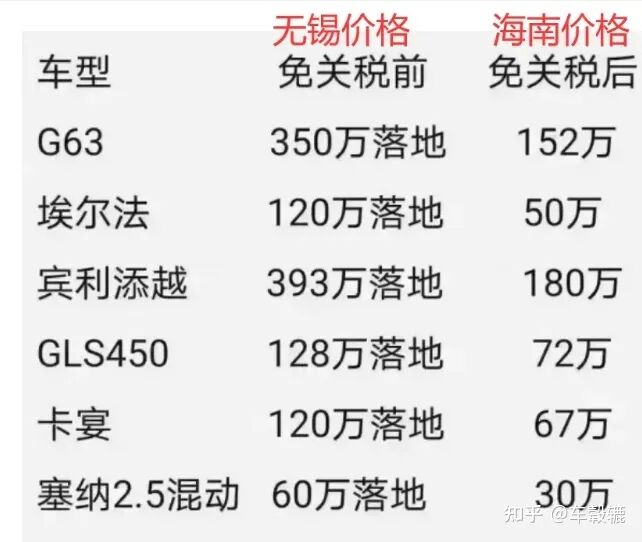 就比如早在20年,财政部、海关总署、税务总局就曾对外发布了《关于海南自由贸易港交通工具及游艇 " 零关税 " 政策的通知》。随后不久,就网传出一张在海南汽车免税政策下进口汽车的价格图,所涉及的豪车车型,均有近 50% 的免税幅度。