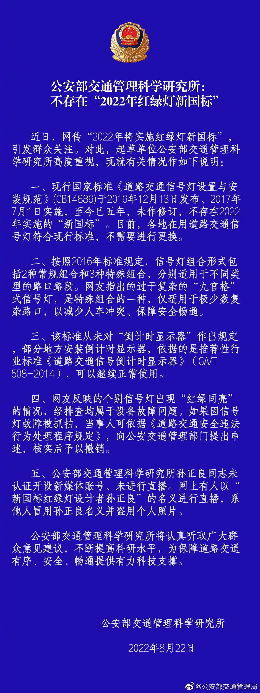 甚至还有传出,所谓的“新国标”红绿灯的设计者孙正良,还在某平台直播,最后被喷到破防下线删号了!