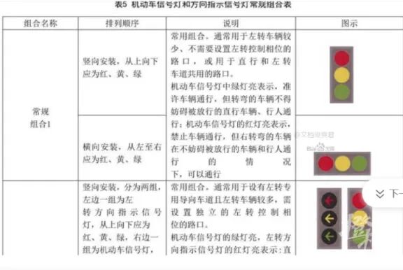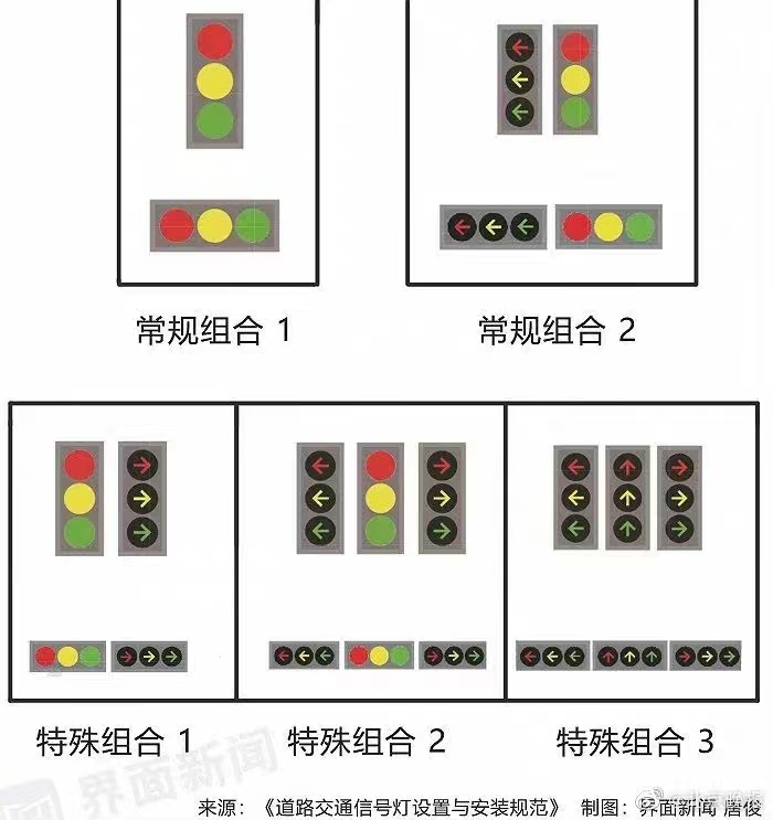 标准中规定了5种信号灯组合形式,包括2种常规组合形式和3种特殊组合形式。