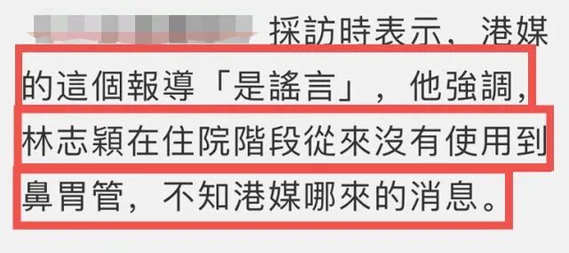 媒体还称,在之后的三天时间内,林志颖都只能通过鼻饲管进食,而且只能是牛奶、营养液类的流食。