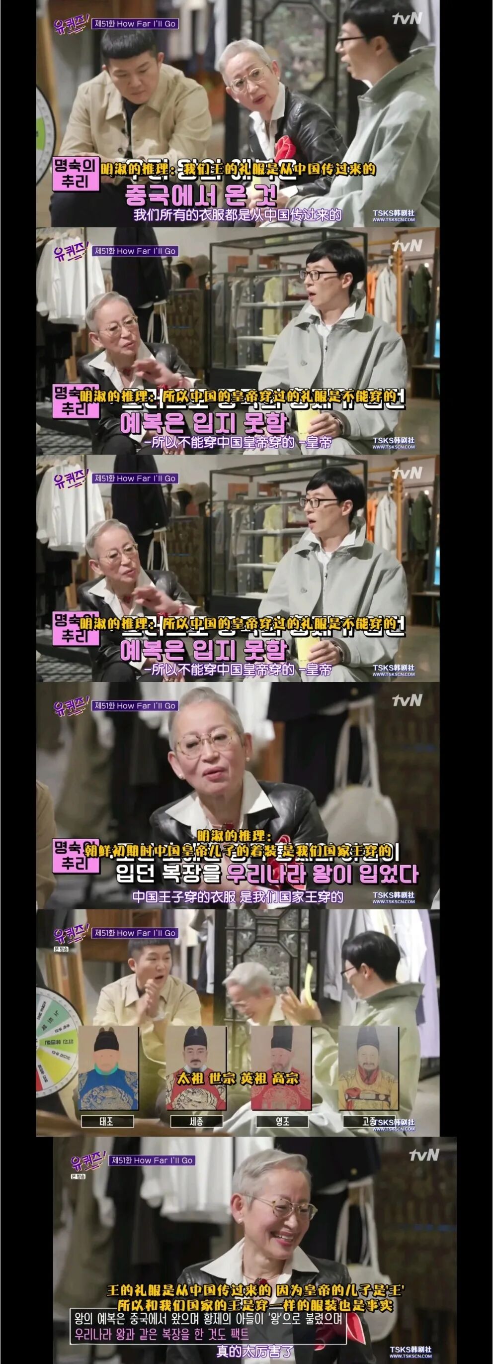 并且韩国著名服装设计师张明淑也曾在综艺节目中表示,韩国的衣服都是从中国传过来,韩国国王的礼服式样应该和中国皇帝儿子的礼服式样同一等级。