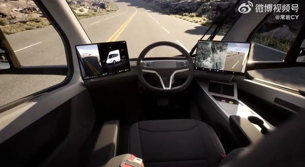 取消了副驾驶,方向盘左右两侧各有一个超大屏幕,均显示车辆的电子后视镜内容。