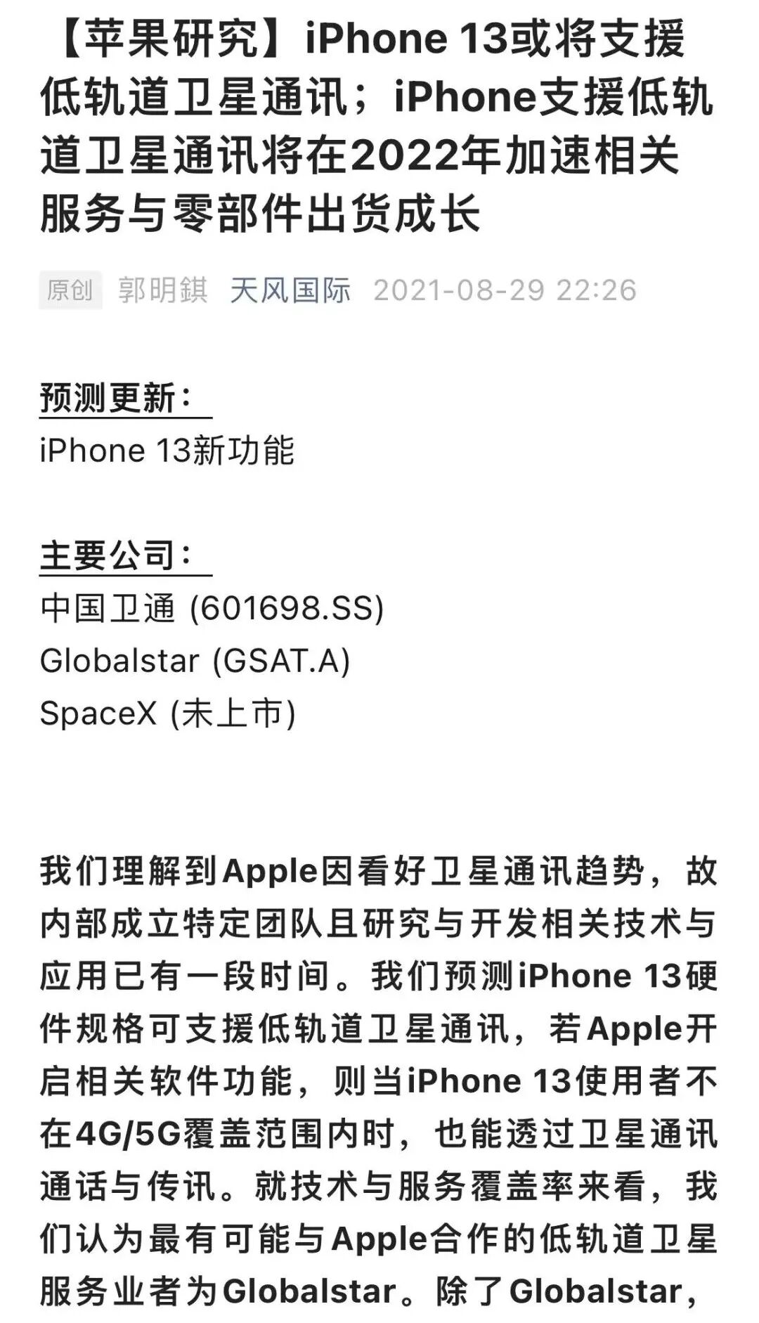 由于邀请函是太空主题,不少业内人士分析苹果可能在暗示新的卫星连接功能。其实,去年iPhone 13没发布的时候,郭明錤就曾分析称“iPhone 13有望在硬件规格上支持低轨道卫星通讯”。