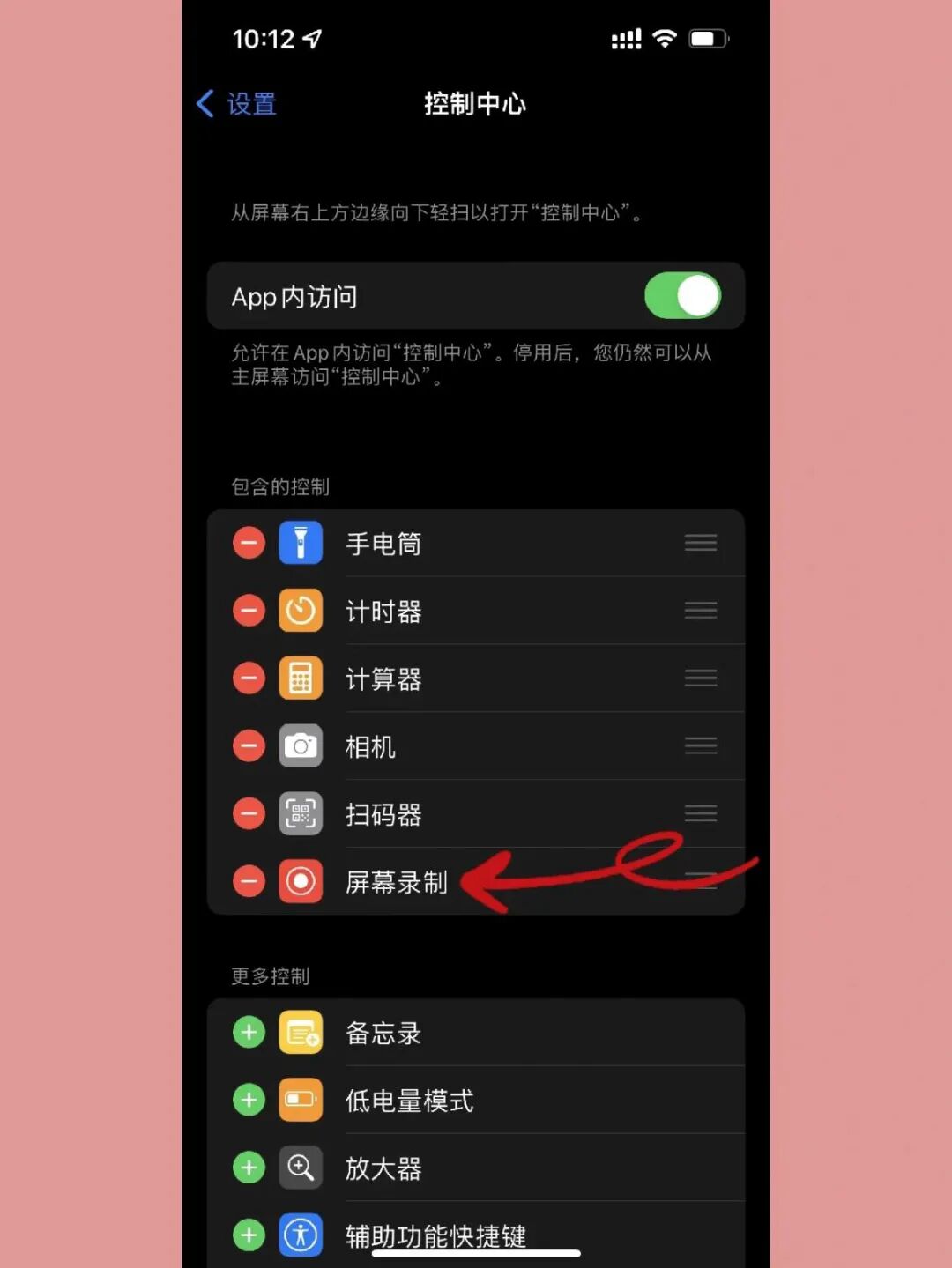 使用方式跟其它的长截图App差不多,安装好后首先需要在手机【设置】-【控制中心】打开【屏幕录制】。