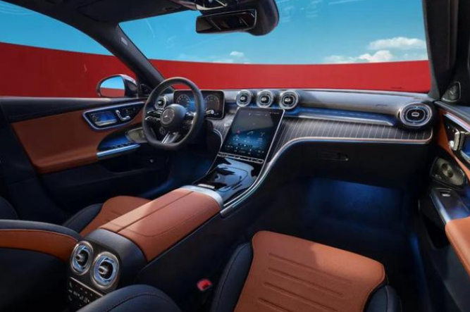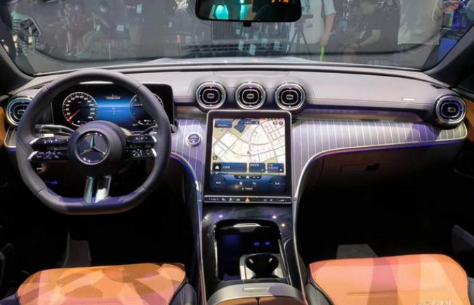 内饰部分,新车搭载了奔驰最新的内饰设计,超大尺寸的中控屏幕集成了车辆的大部分功能,车内的氛围灯也极具设计感,整体感觉就是将豪华和科技完美融合。