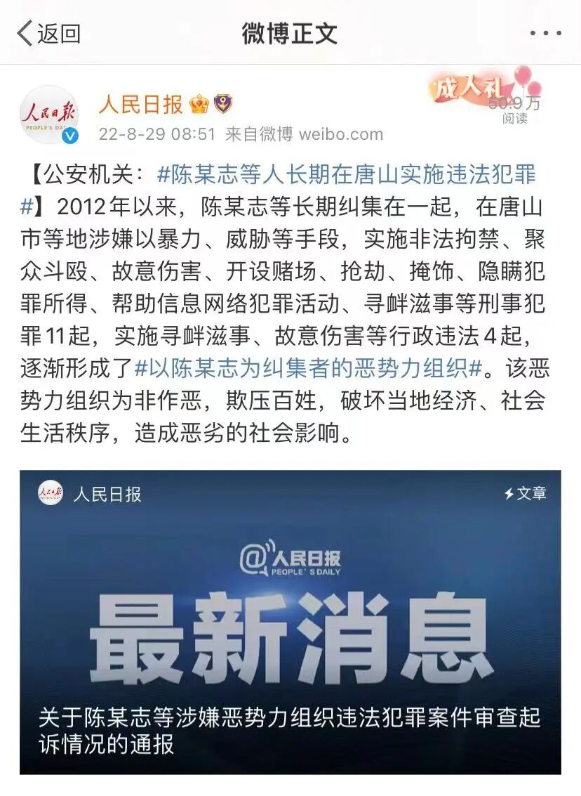 央视新闻:关于陈某志等涉嫌恶势力组织违法犯罪案件审查起诉情况的通报