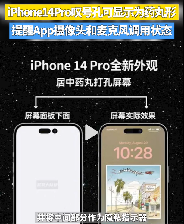 据报道,虽然仍是是那块打孔屏,但苹果决定将“感叹号”形打孔的中间部分设置得“贯通起来”,并作为隐私指示器,在App使用麦克风和摄像头时进行提醒。